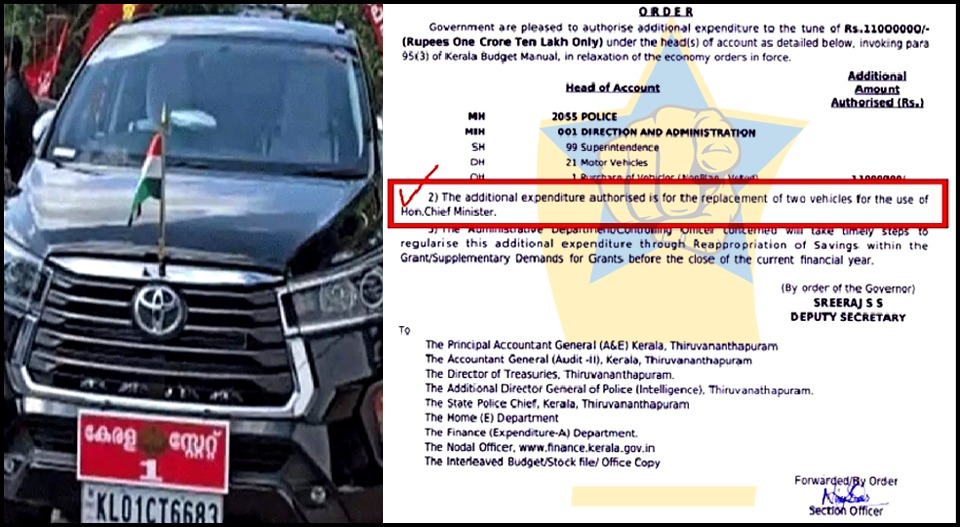 മൂന്നുവർഷമായ കാർ മുഖ്യമന്ത്രി മാറ്റുന്നു; പുതിയ രണ്ടെണ്ണം വാങ്ങാൻ 1.10 കോടി