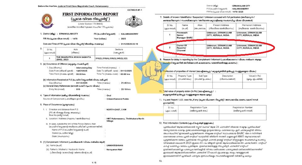 ചാനൽ റേറ്റിങ്ങിൽ തട്ടിപ്പെന്ന പരാതിയിൽ പോലീസ് കേസെടുത്തു; റിപ്പോര്ട്ടര് ടിവി ഉടമ പ്രതി