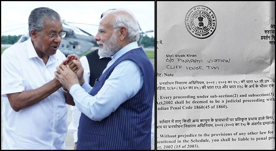 കളളപ്പണം വെളുപ്പിക്കല് കേസില് മുഖ്യമന്ത്രി പിണറായി വിജയന്റെ മകന് വിവേക് കിരണിന് ഇഡി നോട്ടീസ് അയച്ചത് 2023ലാണ്. എന്നാല് ഇക്കാര്യം ഇന്ന് മലയാള മനോരമ പുറത്തുവിടുന്നതു വരെ അതീവ രഹസ്യമായിരുന്നു. കേന്ദ്രം ഭരിക്കുന്ന ബിജെപിക്ക് ഇക്കാര്യം ഉറപ്പായും അറിയാവുന്ന കാര്യമാണ്. എന്നാല് ഇതുവരേയും ബിജെപി നേതാക്കള് ഈ വിഷയം ഉന്നയിക്കാത്തില് ദുരൂഹത ഉറപ്പായും സംശയിക്കാം.