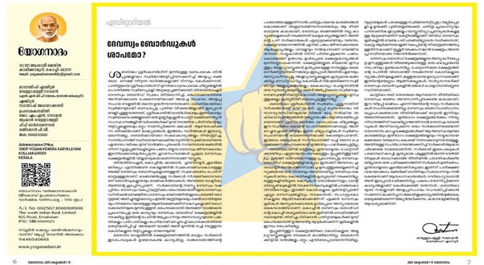 യോഗനാദം മാസികയിലെ എഡിറ്റോറിയലിലൂടെയാണ് വെള്ളാപ്പള്ളി നടേശൻ ദേവസ്വം ബോർഡിനെ രൂക്ഷമായി വിമർശിച്ചിരിക്കുന്നത്. ഭക്തരുടെ നെഞ്ചുനീറുന്ന സ്വർണ്ണത്തട്ടിപ്പടക്കമുള്ള വാർത്തകൾ ദിനംപ്രതി കേൾക്കുമ്പോൾ അതിൻ്റെയെല്ലാം പഴി സർക്കാർ ഏറ്റെടുക്കേണ്ടി വരുന്ന സാഹചര്യം അദ്ദേഹം ചോദ്യം ചെയ്തു. “ദേവസ്വം ഭരണത്തിൽ നടക്കുന്നതെല്ലാം കെട്ട കാര്യങ്ങളാണ്.