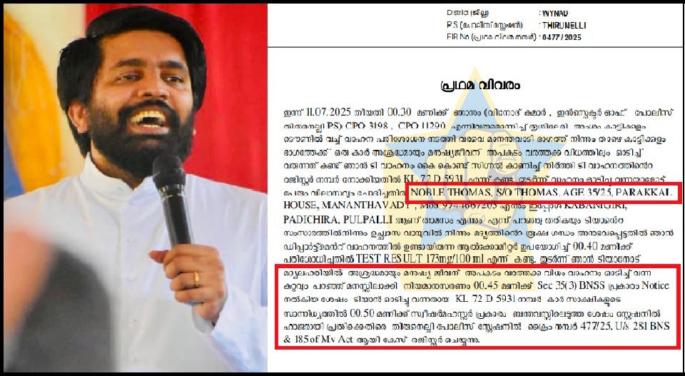ഫാ.നോബിള് പാറയ്ക്കല് വെള്ളമടിച്ചു വണ്ടിയോടിച്ചെന്ന് പോലീസ്; FlR വ്യാജമല്ല, പക്ഷേ മദ്യപിക്കാറില്ലെന്ന് വൈദികൻ!! കര്ത്താവേ കണ്ഫ്യൂഷന് തീർക്കണമേ…