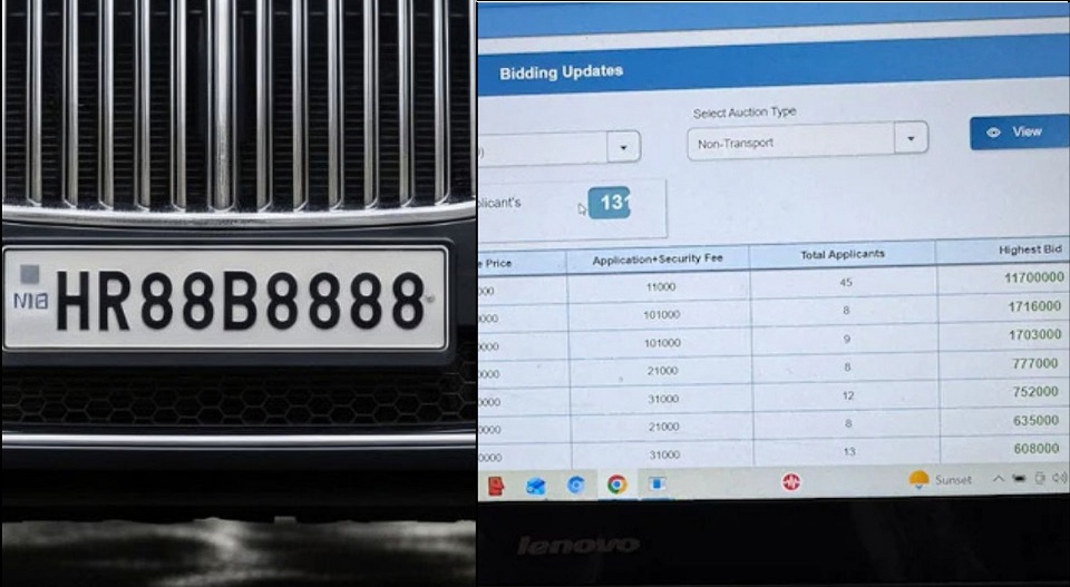ഹരിയാനയിൽ വിഐപി നമ്പറുകൾക്ക് വേണ്ടി ഓൺലൈൻ ലേലം എല്ലാ ആഴ്ചയും നടക്കാറുണ്ട്. ഈ നമ്പറിൻ്റെ അടിസ്ഥാന വില 50,000 രൂപയായിരുന്നു. ലേലത്തിൽ മൊത്തം 45 പേർ പങ്കെടുത്തു. ‘HR88B8888’ എന്ന ഈ നമ്പർ പ്ലേറ്റ് വിഐപി നമ്പറാണ്. ഈ നമ്പറിലെ ‘B’ എന്ന അക്ഷരം ഇംഗ്ലീഷ് അക്ഷരം ‘8’ പോലെ തോന്നിക്കുന്നത് കൊണ്ടാണ് ഇതിന് ഇത്രയും ഡിമാൻഡ് വന്നത് എന്നാണ് വിവരം.