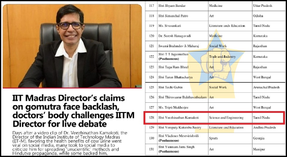 ഗോമൂത്ര ചികിത്സയുടെ പ്രചാരകനും പത്മശ്രീ!! മദ്രാസ് IIT ഡയറക്ടർക്ക് അംഗീകാരം ശാസ്ത്രസാങ്കേതിക മികവിന്