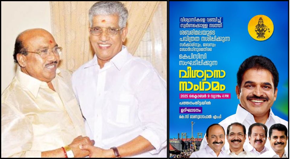 സര്ക്കാരിനും ദേവസ്വം ബോര്ഡിനുമെതിരെ വിശ്വാസികളെ സംഘടിപ്പിക്കാനായി നാല് മേഖലാ ജാഥകള് കോണ്ഗ്രസ് പ്രഖ്യാപിച്ചത് ഇരു സമുദായ നേതൃത്വത്തെയും അമ്പരിപ്പിച്ചിട്ടുണ്ട്. 2018ലെ യുവതി പ്രവേശത്തിനെതിരെ ഒറ്റയ്ക്ക് നാമജപ ഘോഷയാത്ര നാടാകെ നടത്തിയ എന്എസ്എസ് ശബരിമല അയ്യപ്പക്ഷേത്രത്തിലെ ദ്വാരപാലക വിഗ്രഹത്തിലെ സ്വര്ണം മോഷ്ടിച്ച സംഭവത്തില് മിണ്ടാതിരിക്കുന്നതിന്റെ കാരണം പോലും വിശദീകരിക്കാനാവുന്നില്ല. ജനറല് സെക്രട്ടറി സുകുമാരന് നായരാകട്ടെ മാളത്തിലൊളിച്ചമട്ടാണ്.