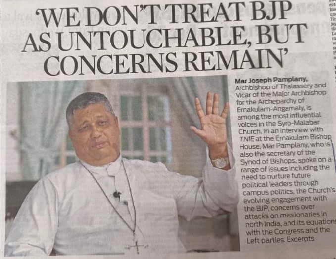 ‘കാസ’യുടെ നിലപാടുകളോട് കത്തോലിക്ക സഭക്ക് യോജിപ്പില്ല; ബിജെപിയോട് അയിത്തമില്ല, പക്ഷേ ആശങ്കയുണ്ട്; നിലപാട് പറഞ്ഞ് ആര്ച്ച് ബിഷപ്പ് പാംപ്ലാനി